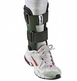 Infilare il piede che indossa l'ortesi in una calzatura spaziosa e stabile (la scarpa deve essere regolabile con i lacci o con chiusura autoadesiva).